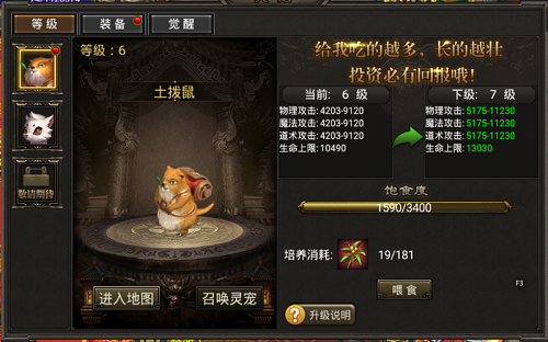 4.当所有灵宠装备均达到10级,可开启灵宠觉醒,消耗灵兽内丹可提升觉醒等级